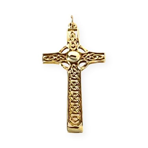 Stunning St Monan Celtic Gold Cross in 9ct gold. The cross itself is a Christian symbol of the sacrifice and resurrection of Jesus Christ. The circle around the cross is a Celtic symbol of eternity and the interconnectedness of all things. Together, the cross and circle represent the balance between the physical and spiritual worlds, and the eternal nature of love and faith.