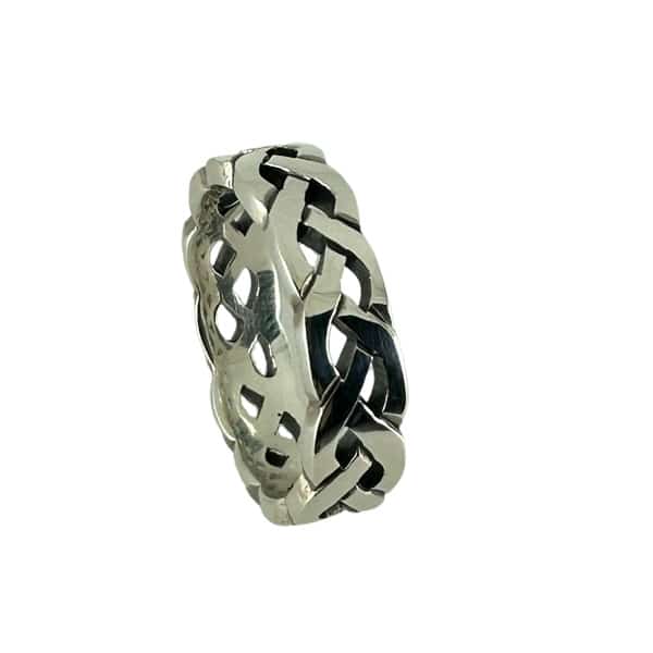 Our sterling silver Celtic Ring, Ollay, features interlacing knotwork in a contemporary design. Suitable for both men and women in a large variety of sizes.