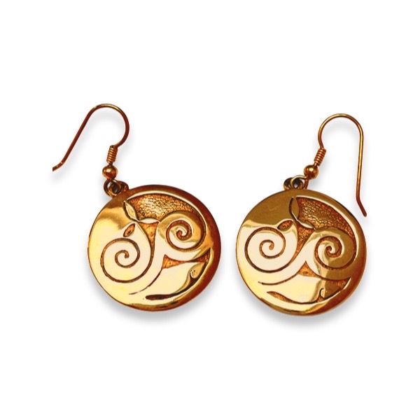 9ct Gold earrings - with a stunning Celtic design - are named after a stunning area in North Uist, Aird A' Mhorain. These earrings are supplied with a variety of fittings - shown here with drop hooks. They are hallmarked in Edinburgh and supplied with a presentation jewellery box. The earrings are approximately 25mm in diameter.