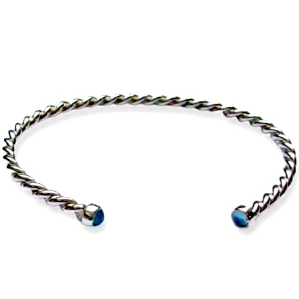 Mini modern Torc Bangle stone set in sterling silver set with blue topaz.