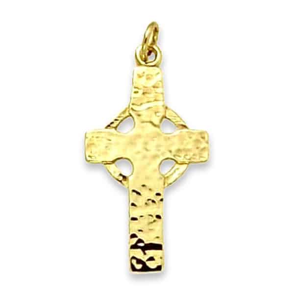 Stunning 9ct Gold St Patrick Celtic Cross. The cross itself is a Christian symbol of the sacrifice and resurrection of Jesus Christ. The circle around the cross is a Celtic symbol of eternity and the interconnectedness of all things. Together, the cross and circle represent the balance between the physical and spiritual worlds, and the eternal nature of love and faith.